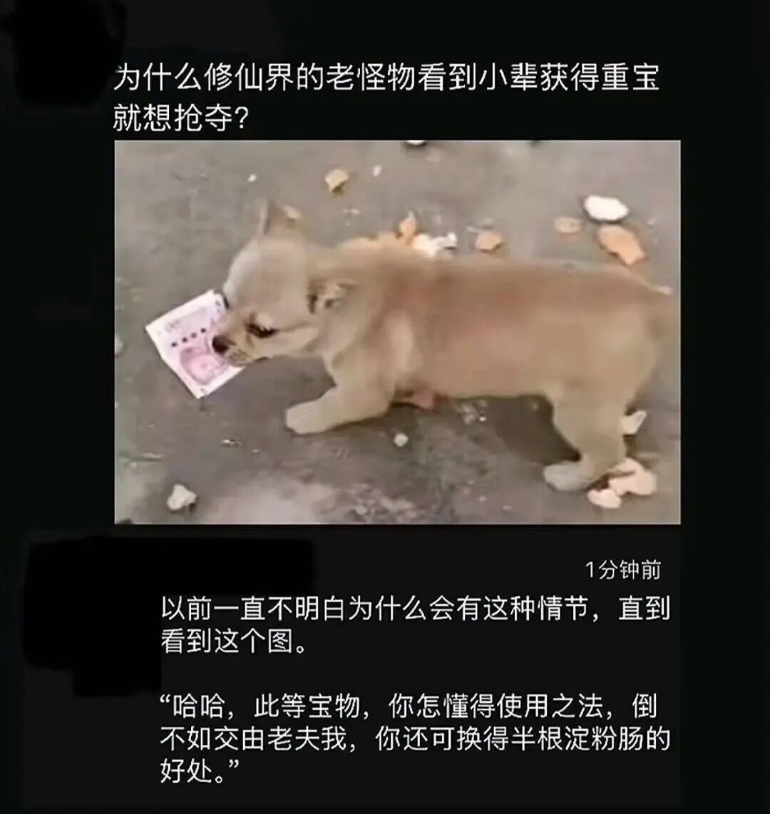 | 小輩,這寶物你用的明白嗎,不如交給老夫,還能讓你得到一兩根火腿腸的好處 |