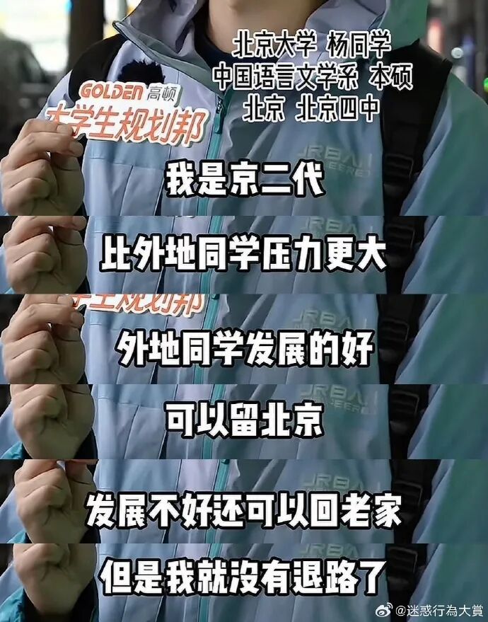 | 他沒退路啥意思?發展不好就沒北京戶口啦!!! |