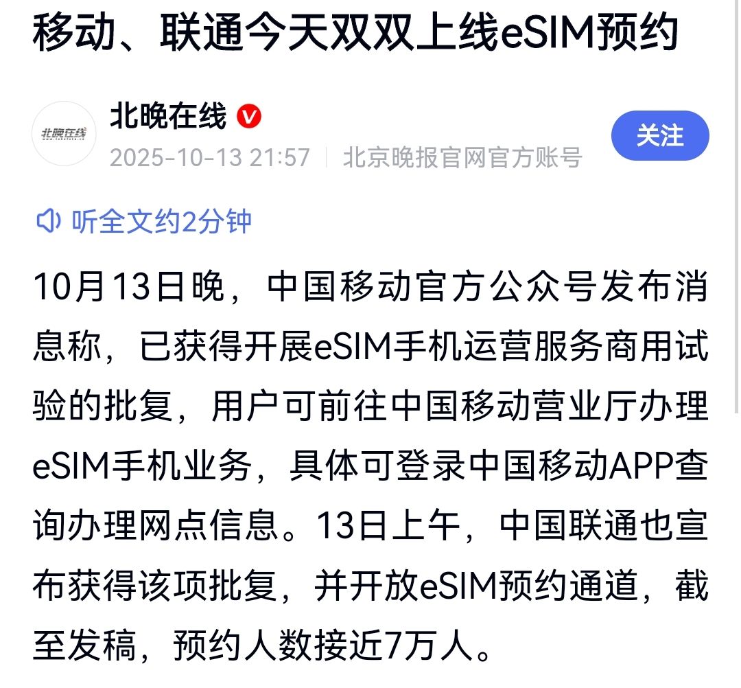 | 這國外 五年前就有了 ,而且 可選擇的更多, 最新的蘋果,國外的就是自帶ESim. 就 國內要用卡 |